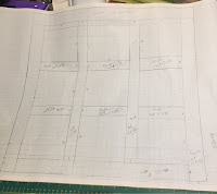 In an attempt to apply the construction techniques I am slowly absorbing from a couple of years attending the Guild's B2B (once Back to Basics, now Basics to Beyond) group, I measured all the panels and graphed them up. There were large size variations in the original bird panels, so the edges were different sizes. Some I didn't want to trim too much, so the connecting sashing needed to compensate.
