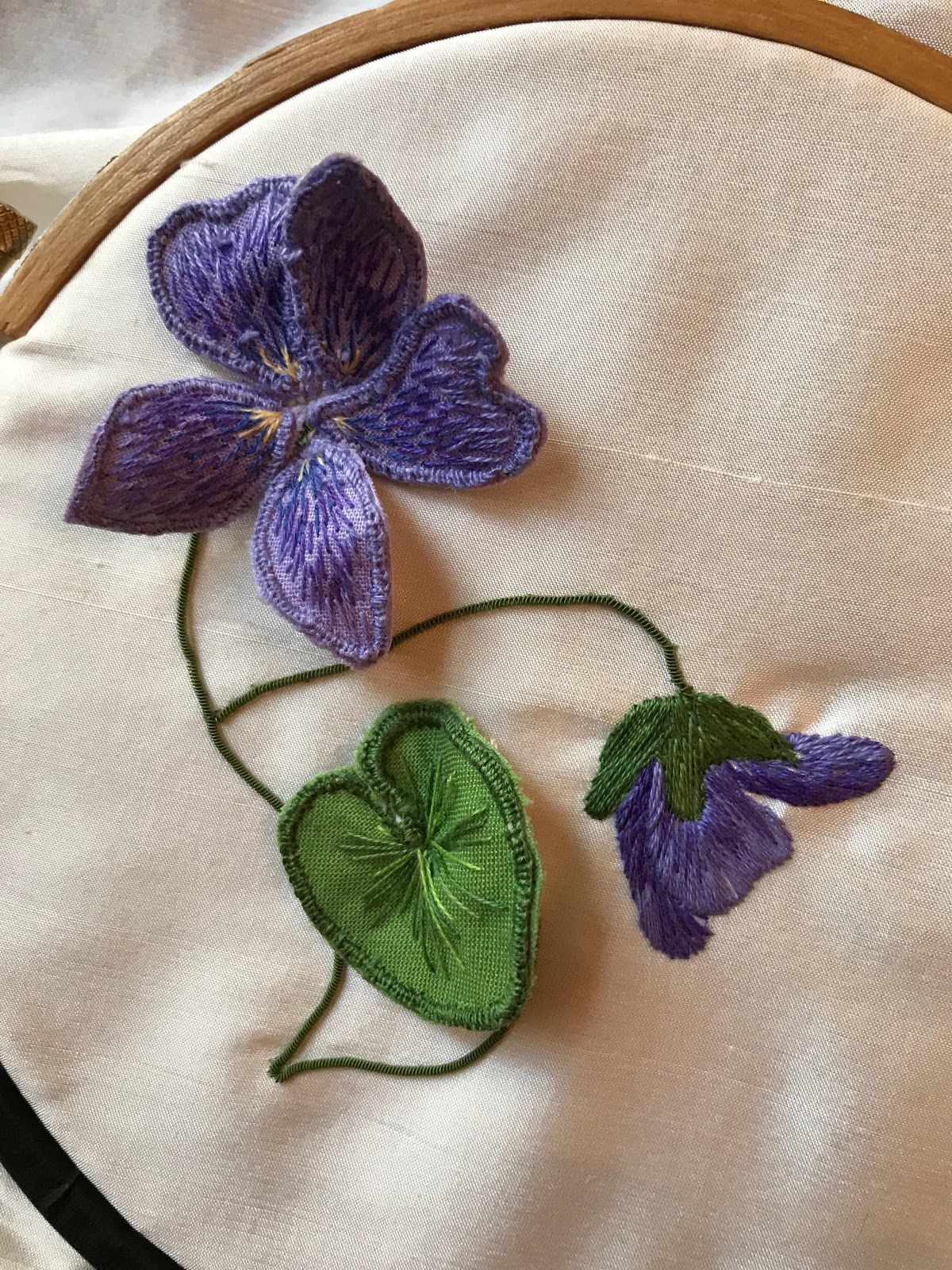 It was a Stumpwork Violet and Silk Shading class taught by Helen Jones. I chose it purely on the dates I had available and not for its content. Both Jenny Adin-Christie and Nicola Jarvis however, told me it would be a good class - and they were right.