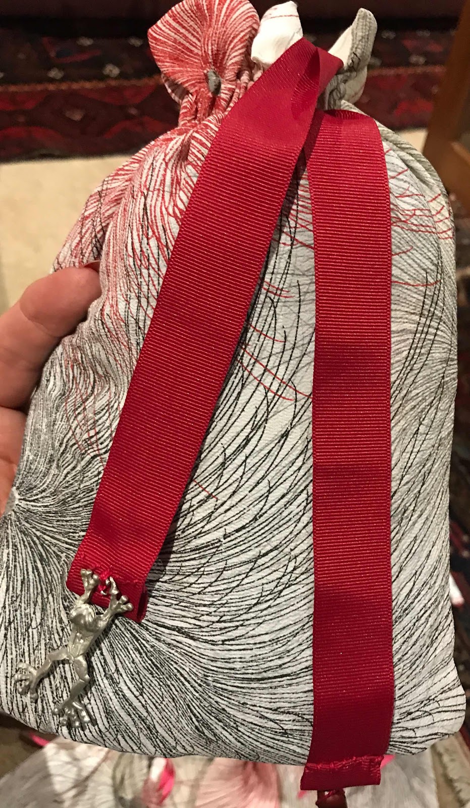 I folded the piece, stitched a back seam and the bottom. I added a lining from some of the fabric I had left from my River Matters project . It's a mix of cultures, but the colours work well.
